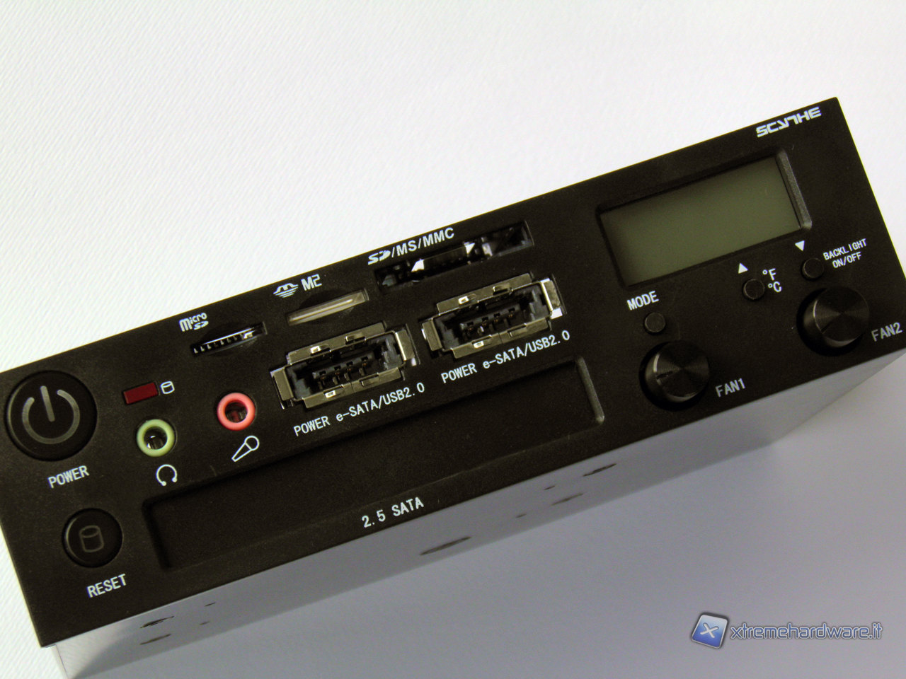 Seguono nella parte superiore il card reader e le 2 porte power e-SATA, inoltre sono presenti i due jack 3.5 mm per la connessione frontale di cuffie e microfono.